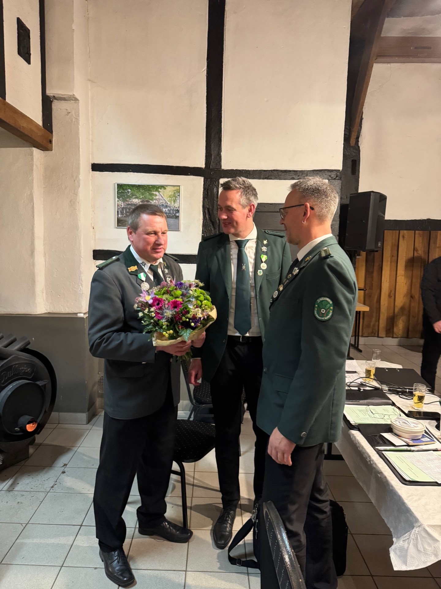 Bei den turnusmäßigen Neuwahlen wurden der Oberst Gerrit Stalfort, der 1. Kassierer Dietmar Oeljeklaus, der 1. Schießwart Holger Mairose sowie der 1. Schriftführer Andre Freude jeweils einstimmig in ihren Ämtern bestätigt. Als neue Fahnenträger wählte die Versammlung einstimmig Timon Wieschebrock und Jonas Elbers. Sie folgen auf Thorsten Steuter, der sein Amt nach 23 Jahren aktiven Engagements freiwillig niederlegte.