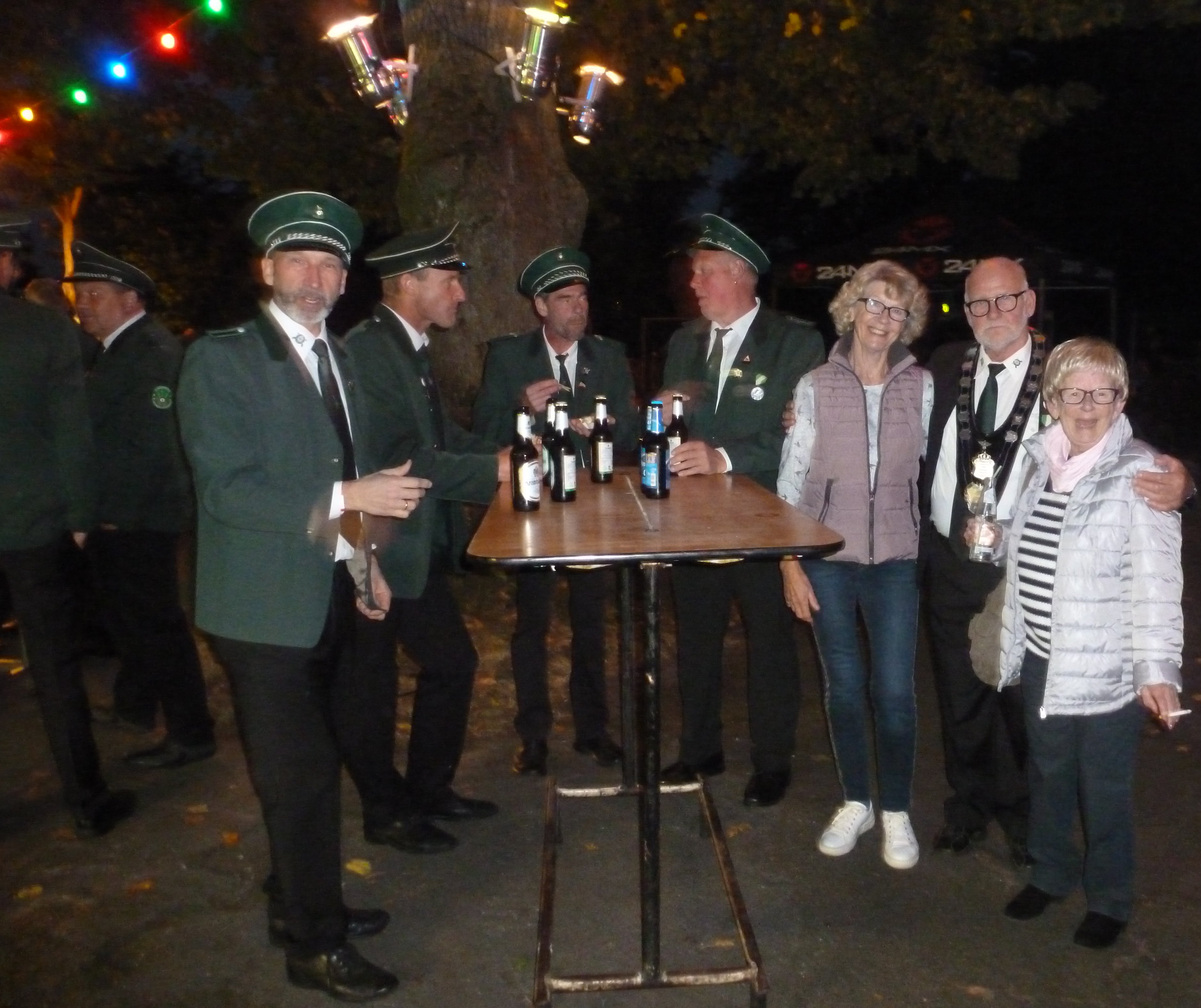 Geimpft, genesen oder getestet, das waren die Voraussetzungen, um an diesem Event teilzunehmen. Wie selbstverständlich wurden die Nachweise auch am Eingang gezeigt. Das Konzept scheint auch akzeptiert worden zu sein. Es haben immerhin rund 90 Schützenbrüder mit ihren Familien teilgenommen. Unter den Gästen waren natürlich auch die amtierenden „ Langzeitmajestäten“: König Andre Baumann mit seiner Königin Lia Wieschebrock, der Jungkönig Marcus Wiechert und das Kaiserpaar Bernd und Erika Landwehr. Bei herrlichem Wetter und auf einem geschmückten Festplatz war die Stimmung bestens. „ Es ist schön mal wieder rauszukommen und sich zu treffen,“ war viel zu hören. Da war es schon zu verschmerzen, dass es die kühlen Getränke nur aus Flaschen gab. Auf dem Grill lagen auch verschiedene Leckereien für eine gute Unterlage. So wurde es doch schon eine längere Feier. Allgemeine Meinung, ein gelungener Abend.